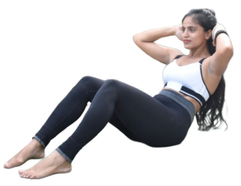 – अब धड़ वाले हिस्से को जमीन से थोड़ा ऊपर की ओर लाकर और हाथों से घुटनों को छूने का प्रयास करना है।